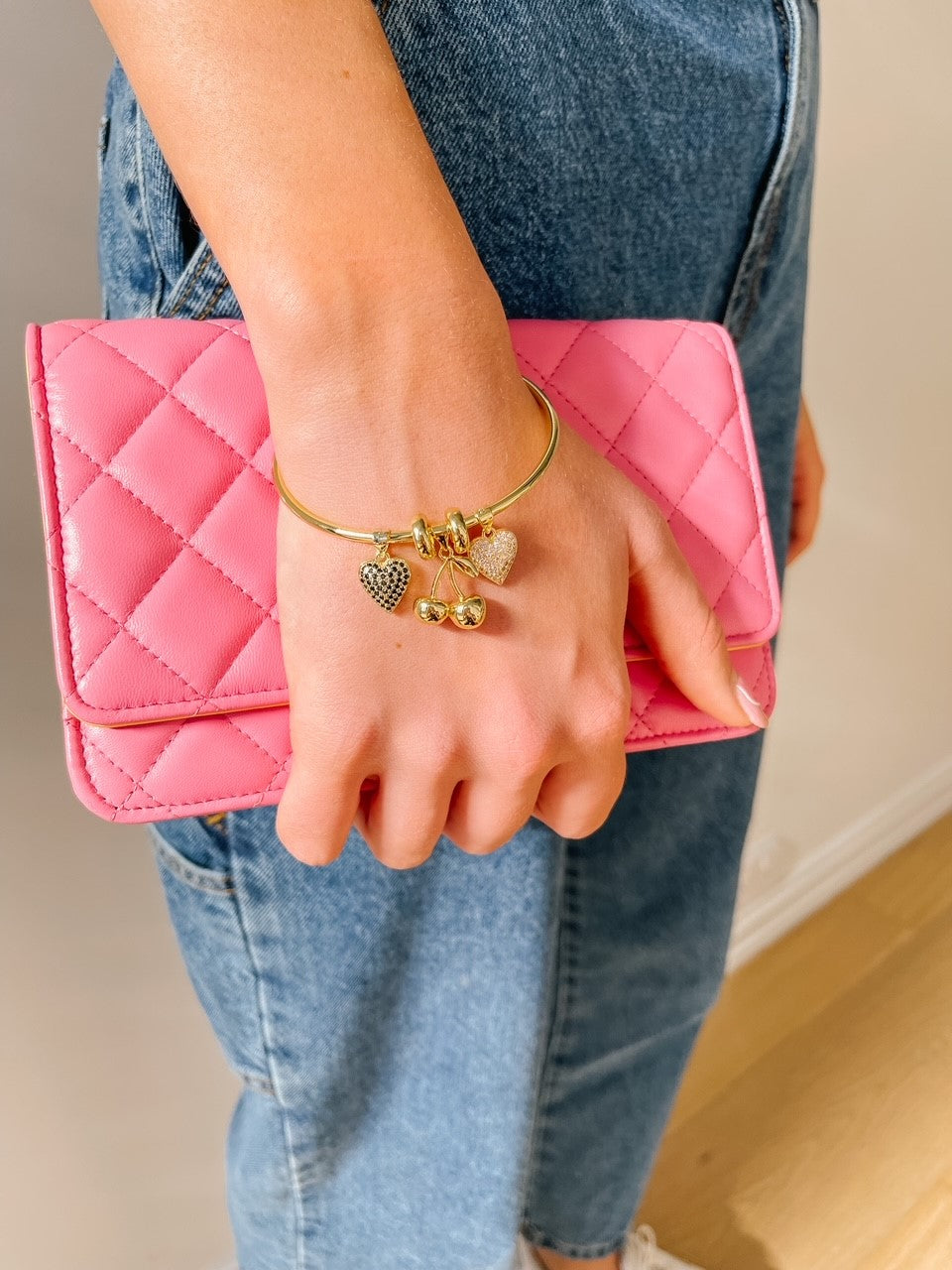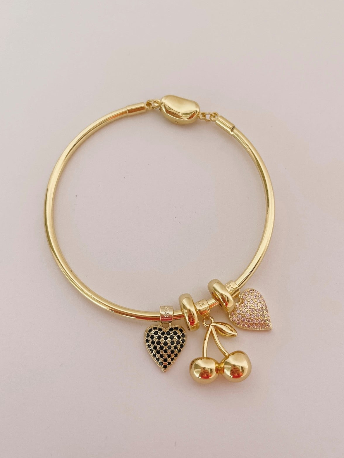 Our Stacks collection takes the worry out of choosing the right combination charm bangle. We have carefully selected beautifully balanced charms and spacers on our stunning gold bangle and popped it all together for you at a discounted price!