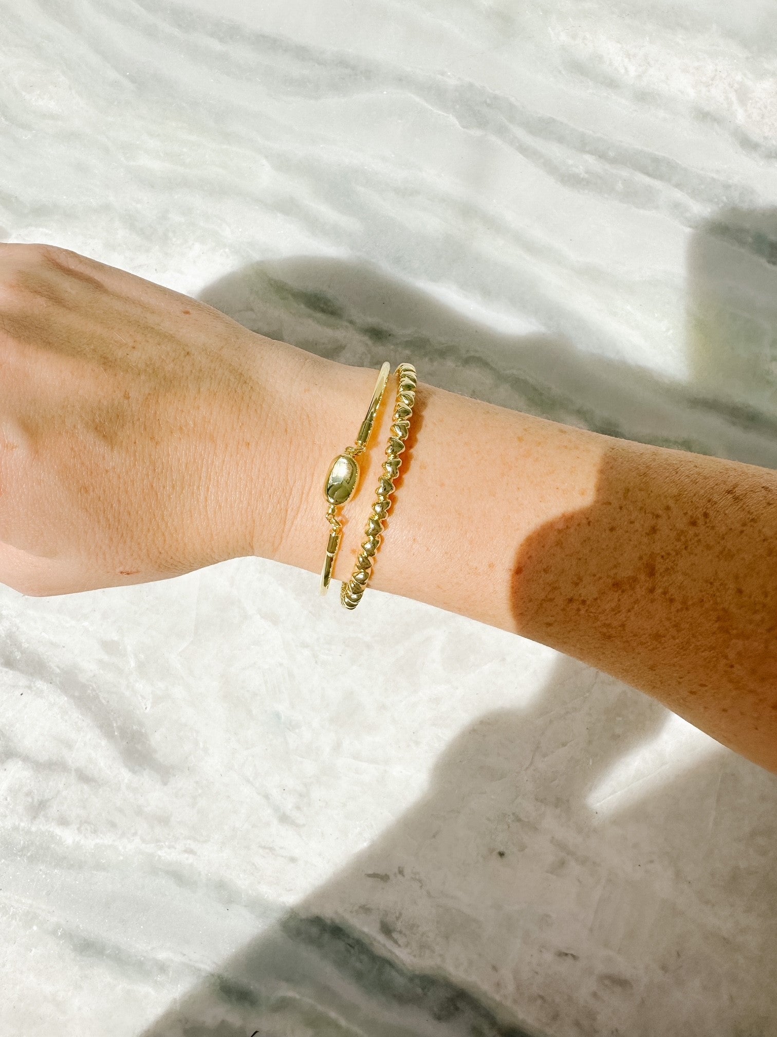 Our sweetheart bangle stack combines 2 easy to wear bangles that you need in your accessories draw. These pieces have been carefully curated to create a simple yet sophisticated look. Wear stacked together or individually depending on your mood!