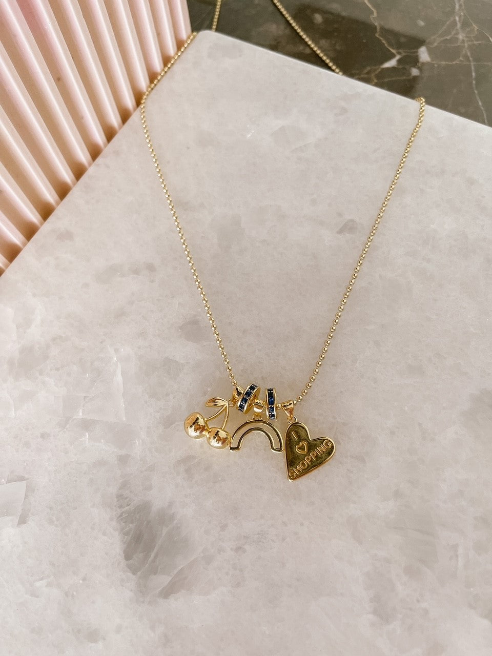 - 3 of our most popular gold charms - the Cherry charm, Rainbow charm and Shopping charm
