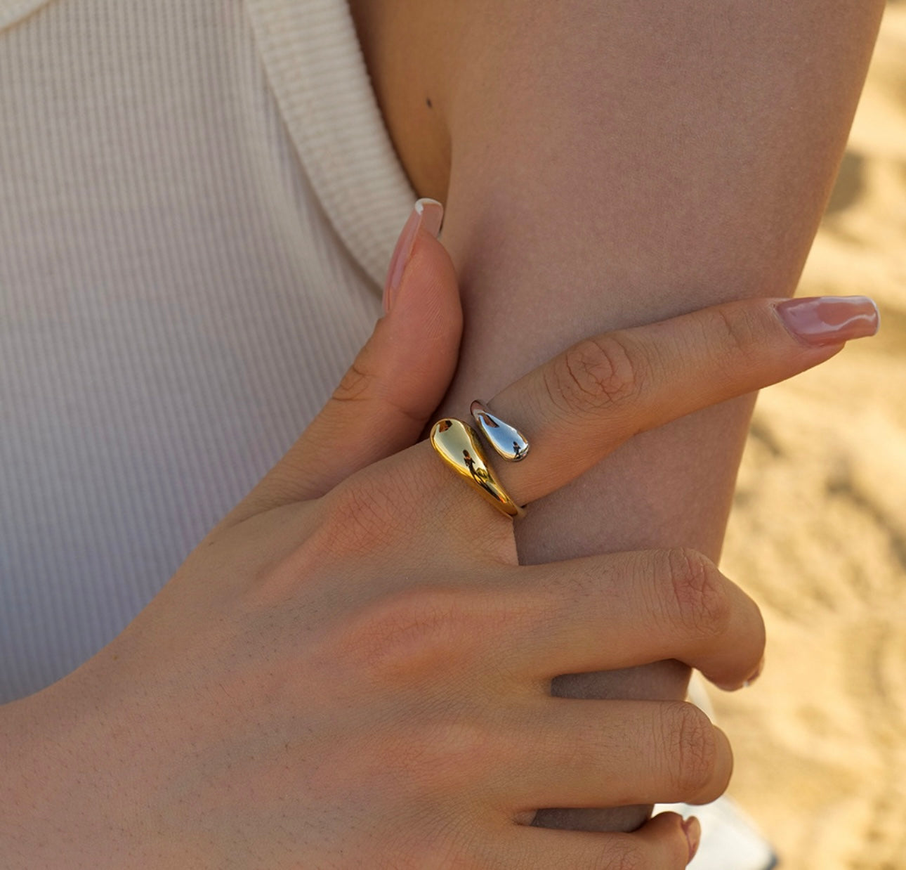 A stunning adjustable two-toned ring crafted from sterling silver and 18k gold plating. Inspired by the iconic New York Bean design, this contemporary piece is both timeless and distinctive. Made from high-quality, hypoallergenic materials and designed to resist tarnishing for lasting wear.